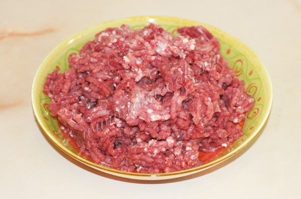 Приготовить мясной фарш. В моем случае это было 30% свинины и 70% говядины.