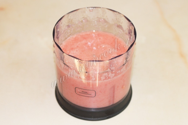 Помидор размолоть на блендере, либо пропустить через мясорубку, таким образом, чтобы получилось однородное томатное пюре.