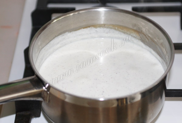 Поставить кастрюлю на огонь и довести до кипения, периодически помешивая. Затем снять с огня и отставить в сторону.