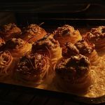 Противень помещаю в разогретую до 200 градусов духовку, запекаю примерно 15 минут. За это время гнезда пропитаются заливкой и немного опустятся. Накрываю противень фольгой, закрепляю края фольги. Выпекаю еще около 25 минут.