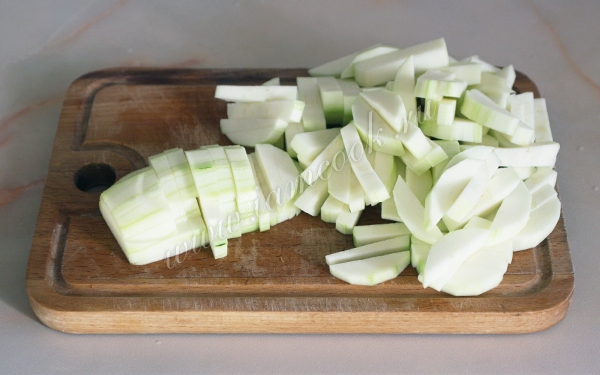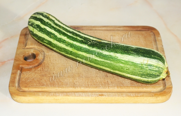 Кабачок как следует вымыть. У меня был вот такой замечательный плод, выращенный на собственной грядке.