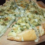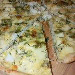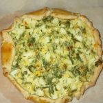 Открытый пирог с сыром и яйцом готов. Слегка остудить и подавать. Приятного аппетита!