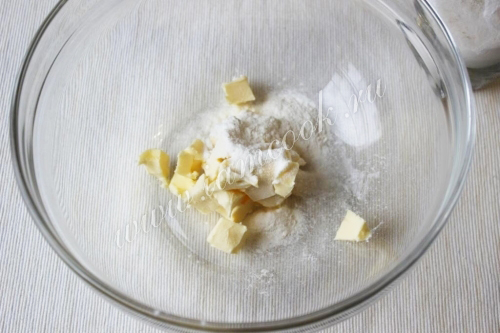 Холодное масло порубите на небольшие кубики (я уже начала сыпать муку, но вспомнила про фото))).