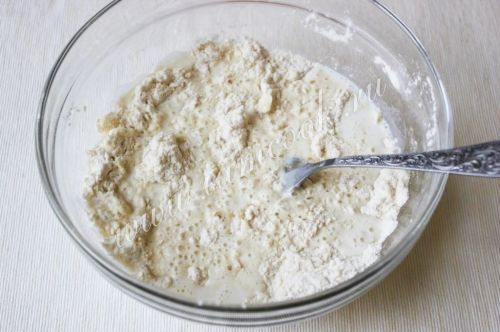 И быстро замесите пышное тесто. Не увлекайтесь вымешиванием. достаточно, чтобы тесто просто схватилось.