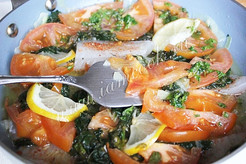 Для приготовления рыбы по-гречески подходит морская рыба свежая или замороженная, её куски с костями или филе. Помимо этого в данном блюде используются овощи, состав которых может несколько варьироваться. Предлагаю вариант из филе тилапии, свежих томатов и замороженного шпината. Состав специй для рыбы - это перцы и ароматные травы, например, петрушка, перец белый, шафран, лимон...