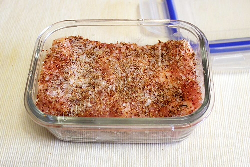 Предлагаю способ засолки сала "по сухому", для него кроме самого сала нужна только соль крупного помола и по желанию любые специи.