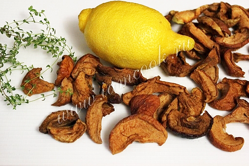 Компот из сушеных яблок - знакомый всем напиток, но его вкус можно разнообразить, если добавить лимон и тимьян. Мне нравится покупать в супермаркете тимьян с корнями, т.е. уже выращенный в маленьких пластиковых горшочках, потом пересаживать его в обычный цветочный горшок и иметь всегда под рукой свежие ароматные листочки и побеги.