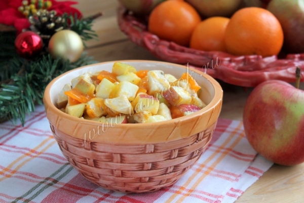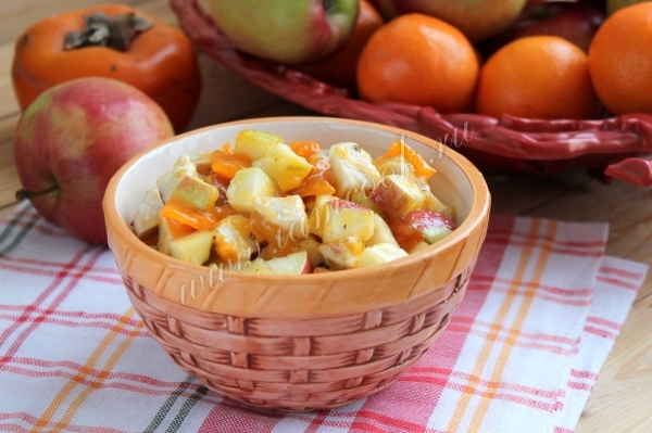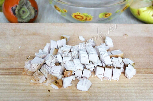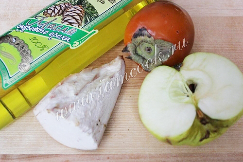 Салат с хурмой, курицей и яблоками - вкусный и полезный.