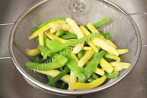 Фасоль ополосните водой. Если у вас замороженная фасоль - на этом шаге можно лишь устранить ледяную глазурь.