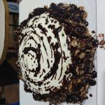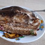 Украсить по желанию. Я растопила шоколад и смешала с кипяченой водой, он сразу загустел. Это делается для того, чтобы перед нарезанием торта шоколад не трескался, не крошился и не застывал в холодильнике. У меня получился самый небрежный "трухлявый" торт из возможных))) Хорошо бы перед нарезанием его охладить, иначе он просто "дышит" и резать его сложно. Ну чем вам не седьмой класс школы?