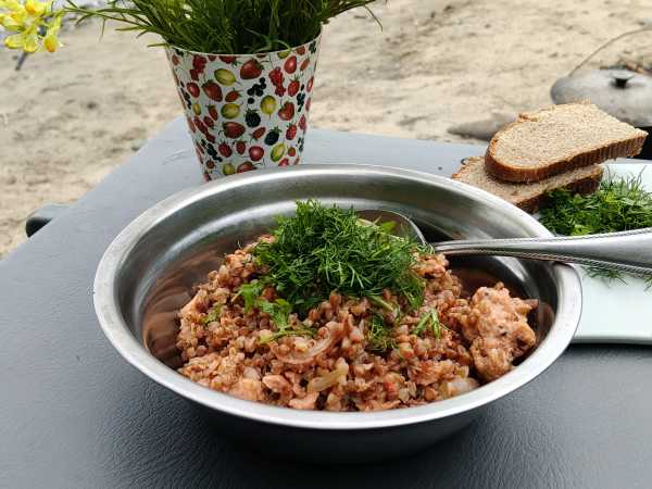 Рецепт этой гречневой каши возник спонтанно - на выездном пленэре готовили завтрак из продуктов, которые были в наличии. Вот в наличии оказались именно такие продукты, а обычная каша с тушенкой ...