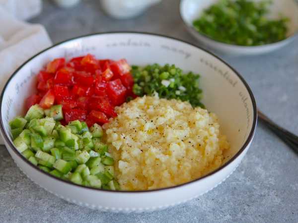Перед вами все продукты, которые нам понадобятся для приготовления салата с пшеном и овощами. Набор овощей для салата может быть разным. Я добавляла только огурцы и помидоры, по желанию можно ...