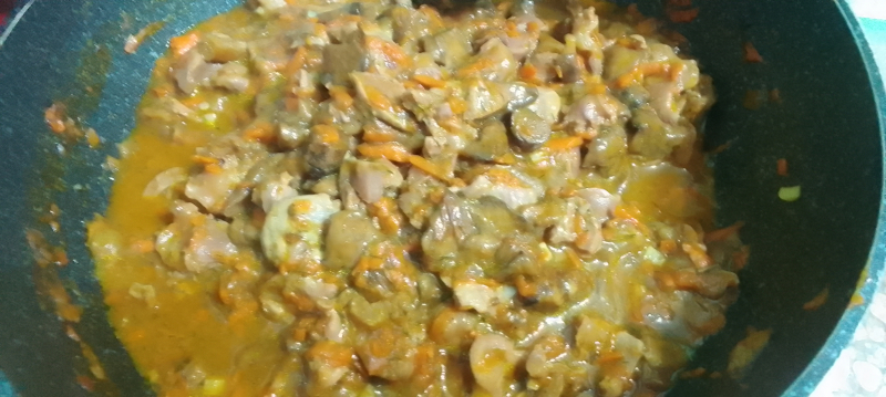 Фотоотзыв по рецепту: Тушеные куриные желудки с грибами