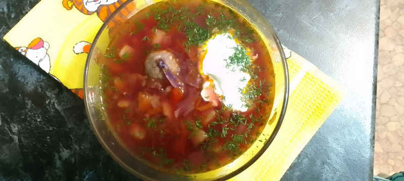 Приготовила щи с красной капустой по вашему рецепту. От себя добавила тефтельки из свино-говяжьего фарша. Не ем супы без мяса. Никогда раньше не пробовала этот сорт капусты. Она довольно плотная и жёсткая. Варится значительно дольше, чем обычная. Цвет в супе получился очень насыщенный и яркий. Действительно как будто борщ, а не щи. А на вкус - щи 😂 Получилось вкусно и необычно! Спасибо за рецепт!