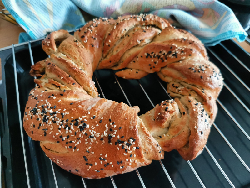 Фотоотзыв по рецепту: Плетеный калач с чесноком и зеленью
