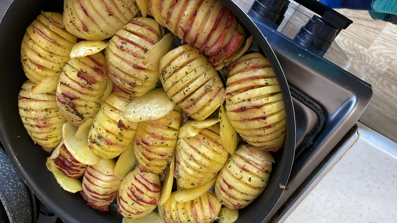 Картошка-гармошка, запеченная с беконом и ароматными травами