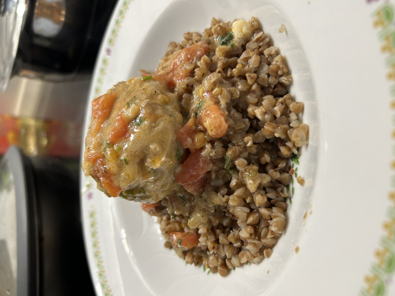 Можно и с гречкой подавать, если нет времени возиться с картошкой)