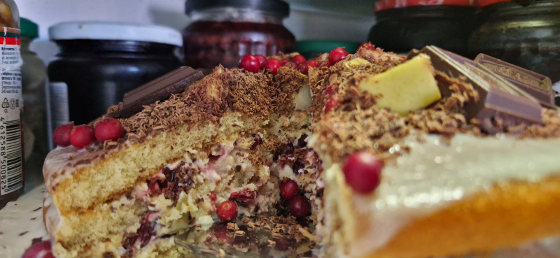 Вместо банана положила давленую бруснику и грушу Санта Мария. Вместо какао-порошка натерла шоколада.