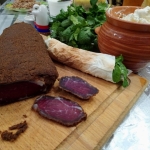 Мои измененияЧаман разводил красным вином. Пажитника (fenugreek) добавил больше чем по рецепту так как показалось слишком жидко. Однако, потом он разбух и загустел. Так что следуйте рецепту.Фотоотзыв #10816 по рецепту: Бастурма армянская