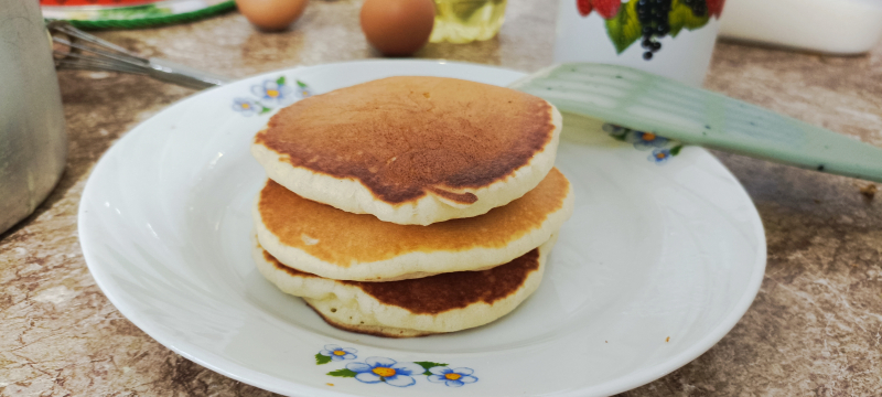 Мои измененияДобавила немного ванилина и чуууть убавила соду.Фотоотзыв #10910 по рецепту: Панкейки на кефире