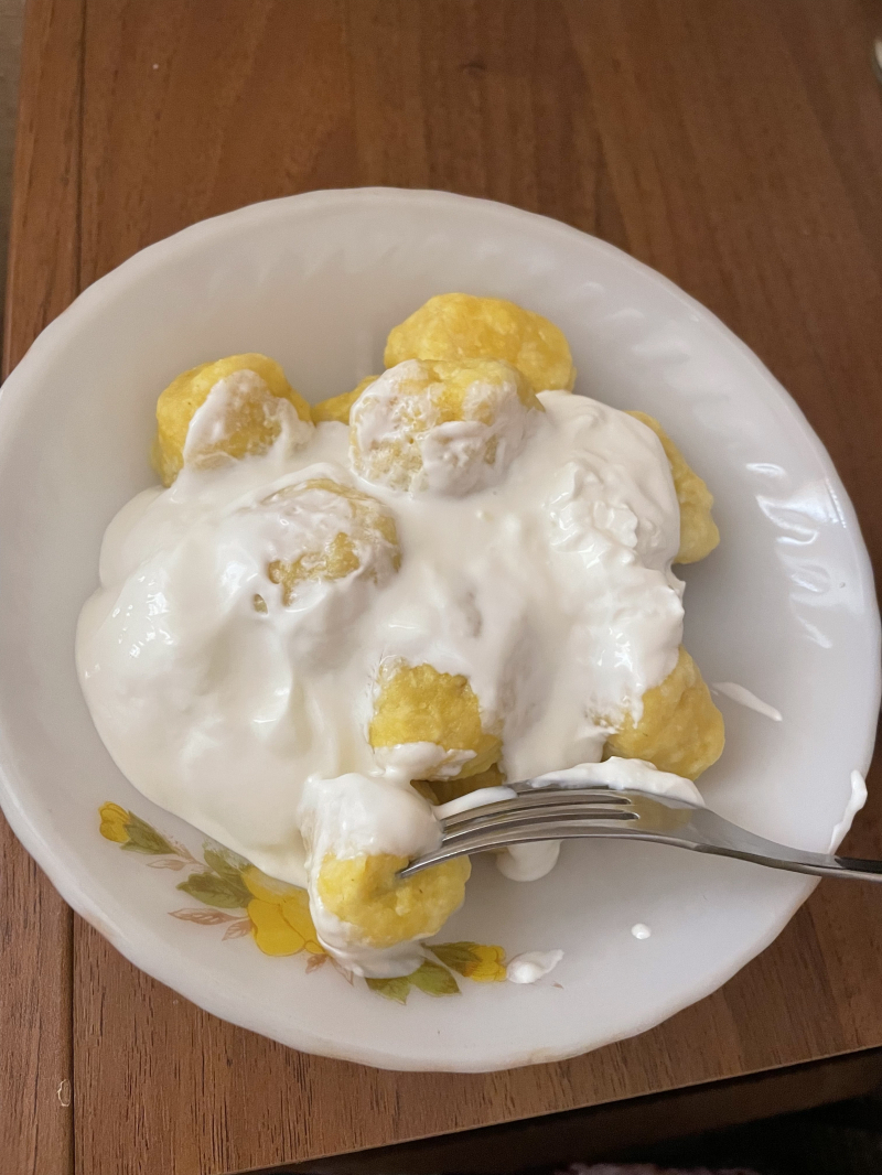 Мои измененияДобавила куркуму для цветаФотоотзыв #11051 по рецепту: Ленивые вареники без муки (с манкой)
