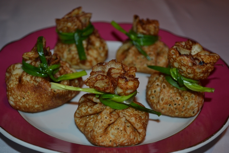 Фотоотзыв по рецепту: Блинные «мешочки» с грибами, ветчиной и сыром
