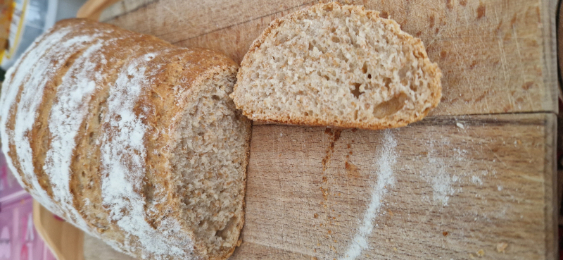 Хлебушек вкусный. Муку брала с отрубями и обычной пшеничной (грамм 100, больше не было). Спасибо за рецепт, закинула в копилочку:)