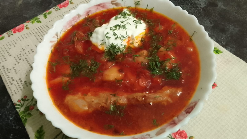 Борщ на бульоне из свиных рёбрышек по вашему рецепту - это просто песня! Очень красный и изумительно вкусный! Большое спасибо!