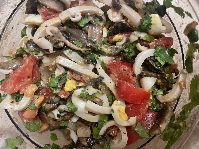 Фотоотзыв по рецепту: Салат из кальмаров с грибами и помидорами