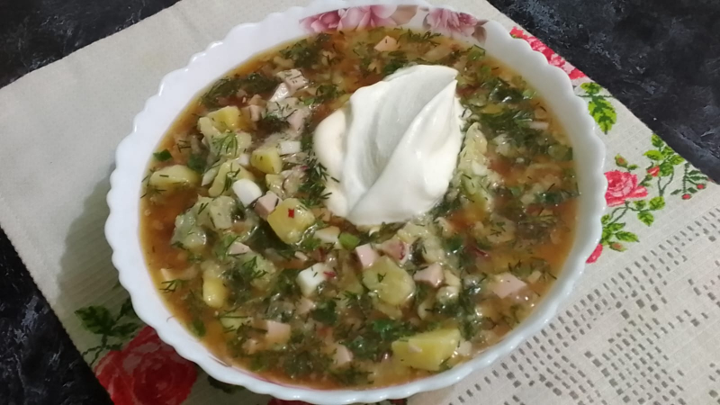 Фотоотзыв по рецепту: Окрошка с колбасой на квасе (классический рецепт)
