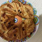 В моем случае было 360 творога и отсюда чуть больше муки, как и всех остальных ингредиентов. Думала, что получится сухо, но я в восторге. также обошлась без изюма и "выворачивания" рулета