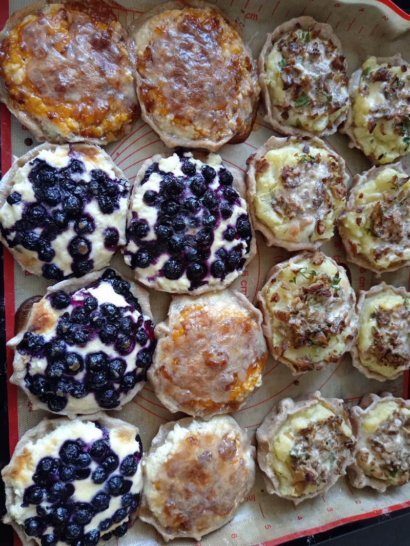 Изменили начинку. Картофель с грибами, творог с ягодами (черника, морошка)