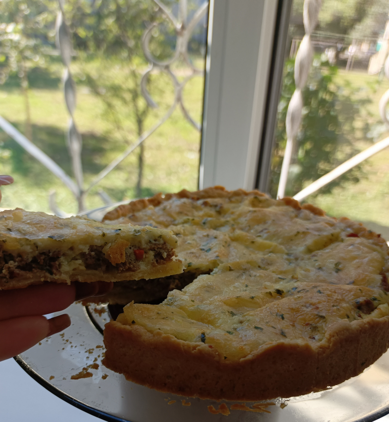 Фотоотзыв по рецепту: Открытый пирог с курицей и сыром