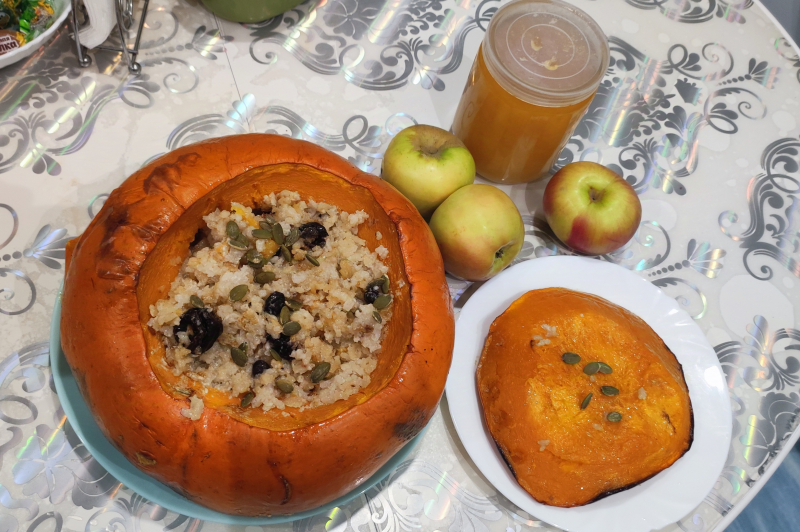 Фотоотзыв по рецепту: Фаршированная тыква с рисом и сухофруктами