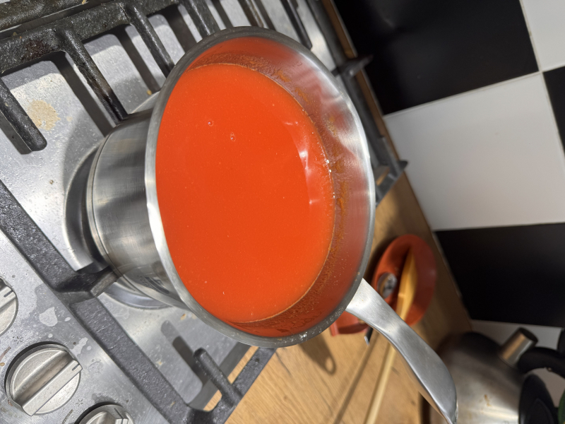 Ситуацию с густотой помог исправить кукурузный крахмал, поэтому девочки советую добавлять его. А также чтобы не мучаться с ситом и кожурой, лучше всего помидоры цельные окунуть в кипяток и вручную убрать кожуру, затем сварить по рецепту и в конце просто без заморочек процедить через марлю/сито только чтобы отделить семечки.