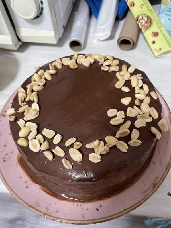 Для меня было лучше покрыть торт не глазурью, а шоколадным ганашем.