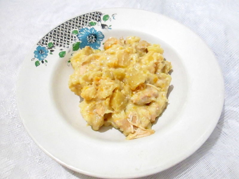 Я в конце еще немного сметанки добавила. Лучок зеленый купила специально, по посыпать перед фотосессией забыла). Готовила из индейки, в мультиварке.
