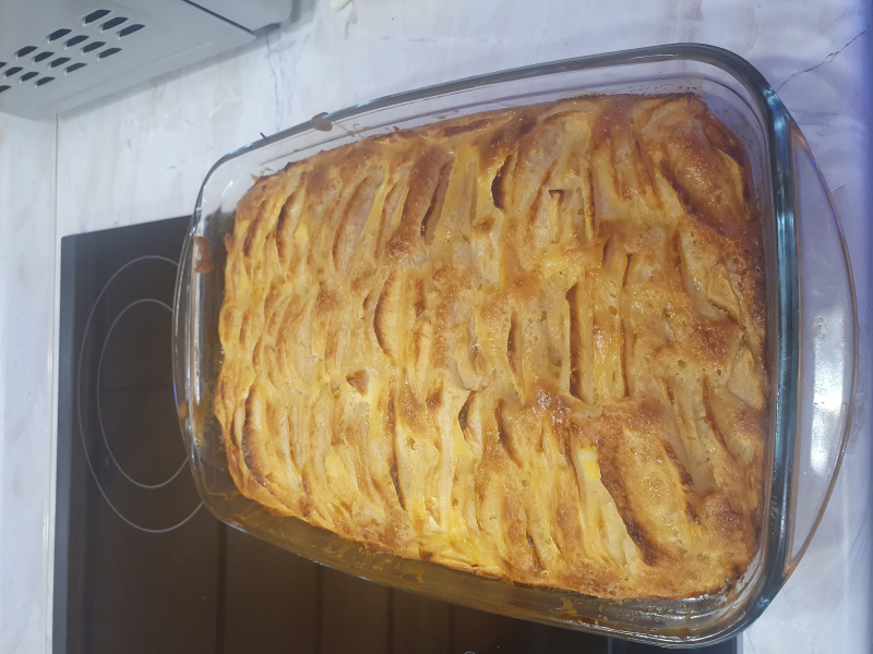 Мои измененияЯблоки не перемешиваем, а разложили равномерно по всей площади манник и торчали яблоки сказала яйцом со сметаной.Фотоотзыв #12312 по рецепту: Манник с яблоками на кефире
