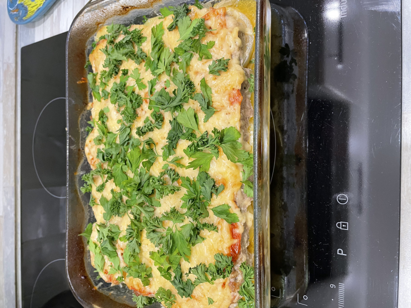 Картошка с фаршем и помидорами в духовке