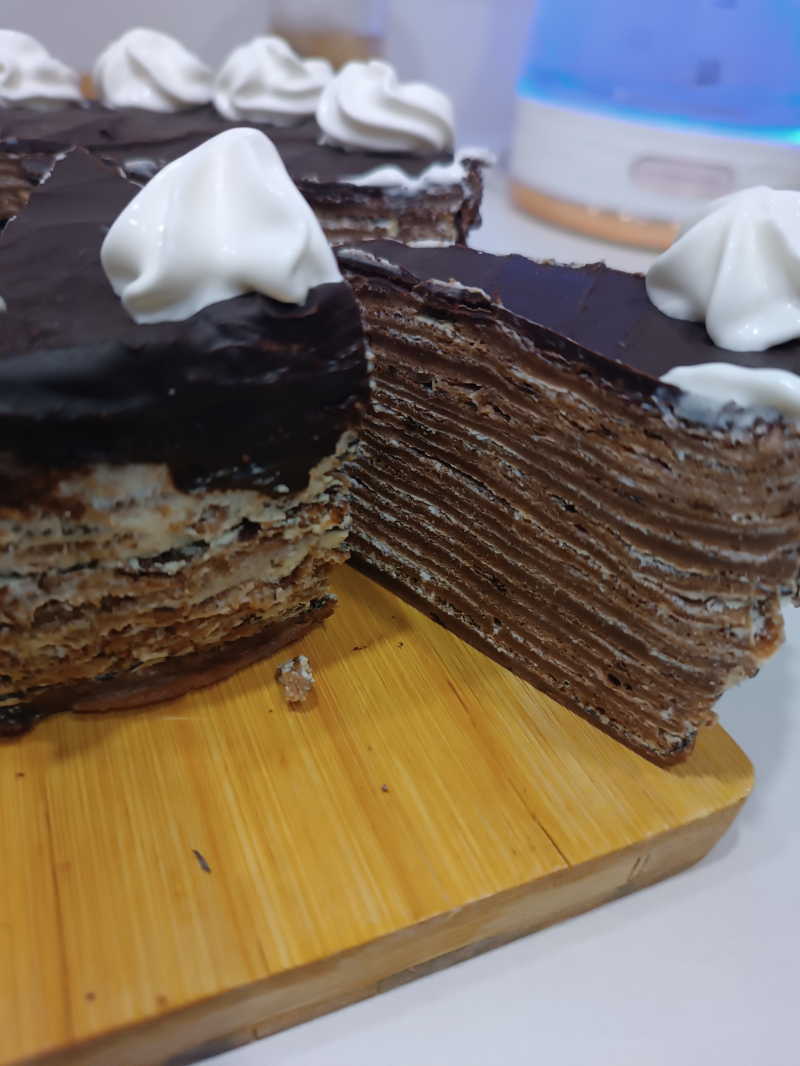 Фотоотзыв по рецепту: Шоколадный блинный торт со сметанным кремом