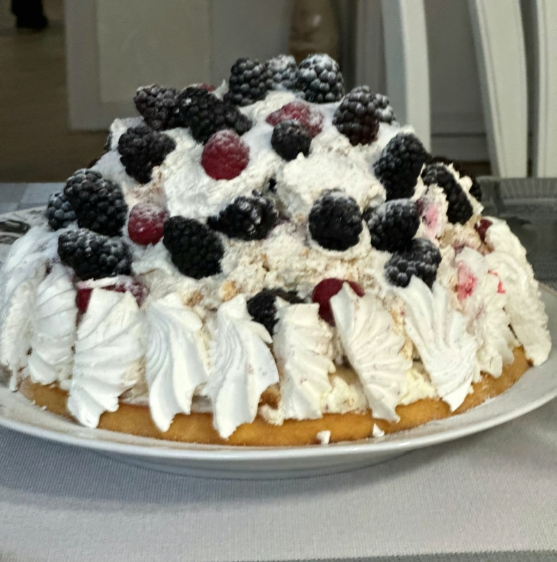 Очень нежный тортик получился, не приторный. Но малины было маловато, зато была ежевика, а у нее много мелких косточек. Я это не учла. На похвалах домашних это не отразилось - мигом все смели. Даже тортик в разрезе не успели сфотографировать...