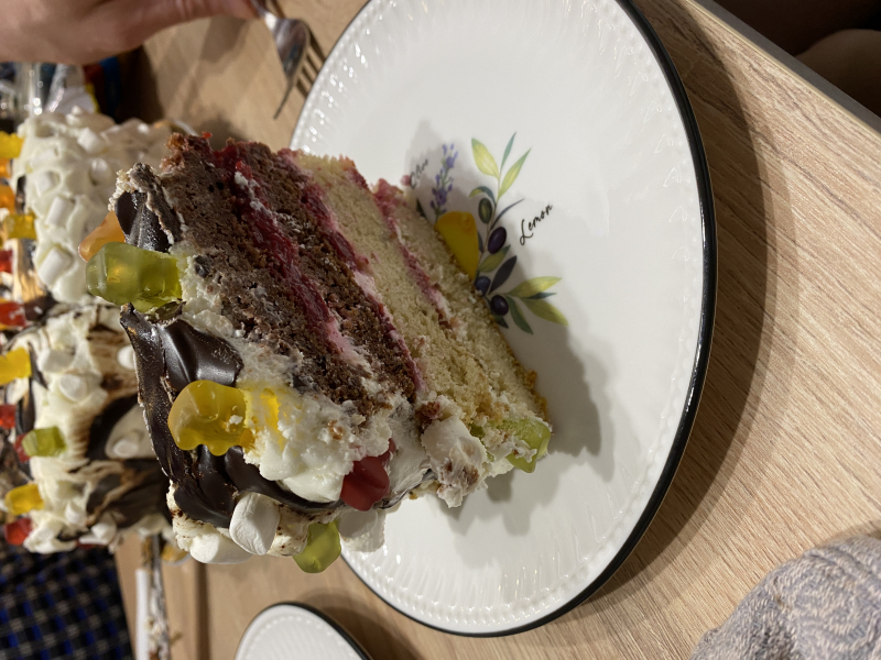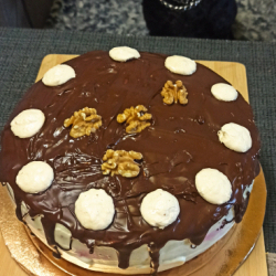 Один корж суховат получился пока не знаю почему, делала два и делила пополам потому что как по рецепту не поднялся