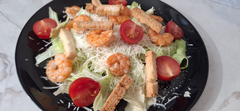 Фотоотзыв по рецепту: Салат «Цезарь» с креветками