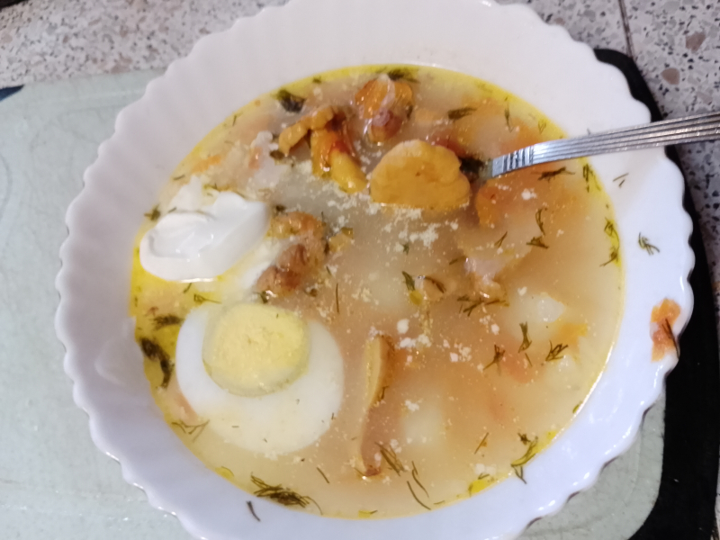 Фотоотзыв по рецепту: Суп с лисичками и плавленым сыром