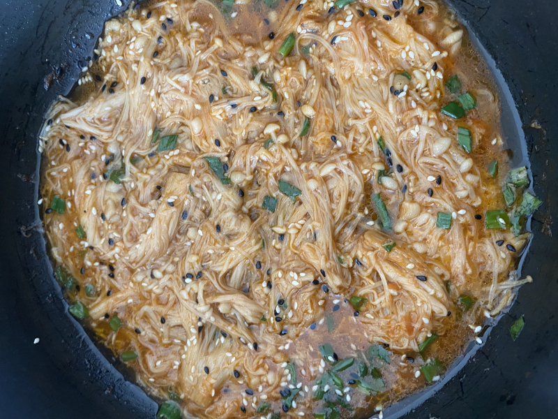 Мои измененияВместо кунжутного масла добавила сам кунжутФотоотзыв #13468 по рецепту: Грибы эноки по-корейски