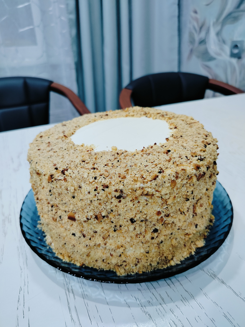 |  |   Спасибо за рецепт! Пекла в пропорции 1.8, нужен был большой тортик. Всё получилось! Крем внутри сделала сметанный, а снаружи крем-чиз и обсыпка. Пока не пробовали, думаю будет 🔥 Фотоотзыв #13595 по рецепту: Торт «Медовик» на сковороде