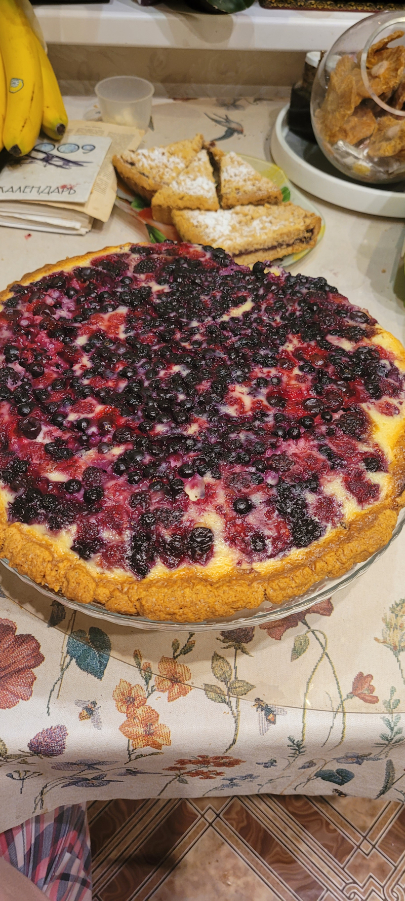 Фотоотзыв по рецепту: Цветаевский пирог с ягодами и сметанной заливкой