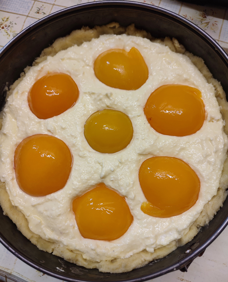 Фотоотзыв по рецепту: Песочный пирог с творогом и консервированным персиком