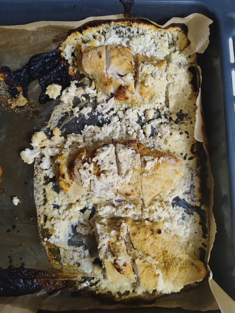 Если творог мелкозернистый, то лучше его не взбивать в блендере, иначе получится каша, а начинка впоследствии вытечет, как у меня на фото. Запекала я 40 минут, вместо положенных 30
