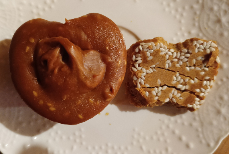Всё получлось! Уваривала 5 л сыворотки и 500 мл молока, в конце добавила немного сгущёнки и кунжута. Получилось что-то среднее между брюностом и вторым сыром.